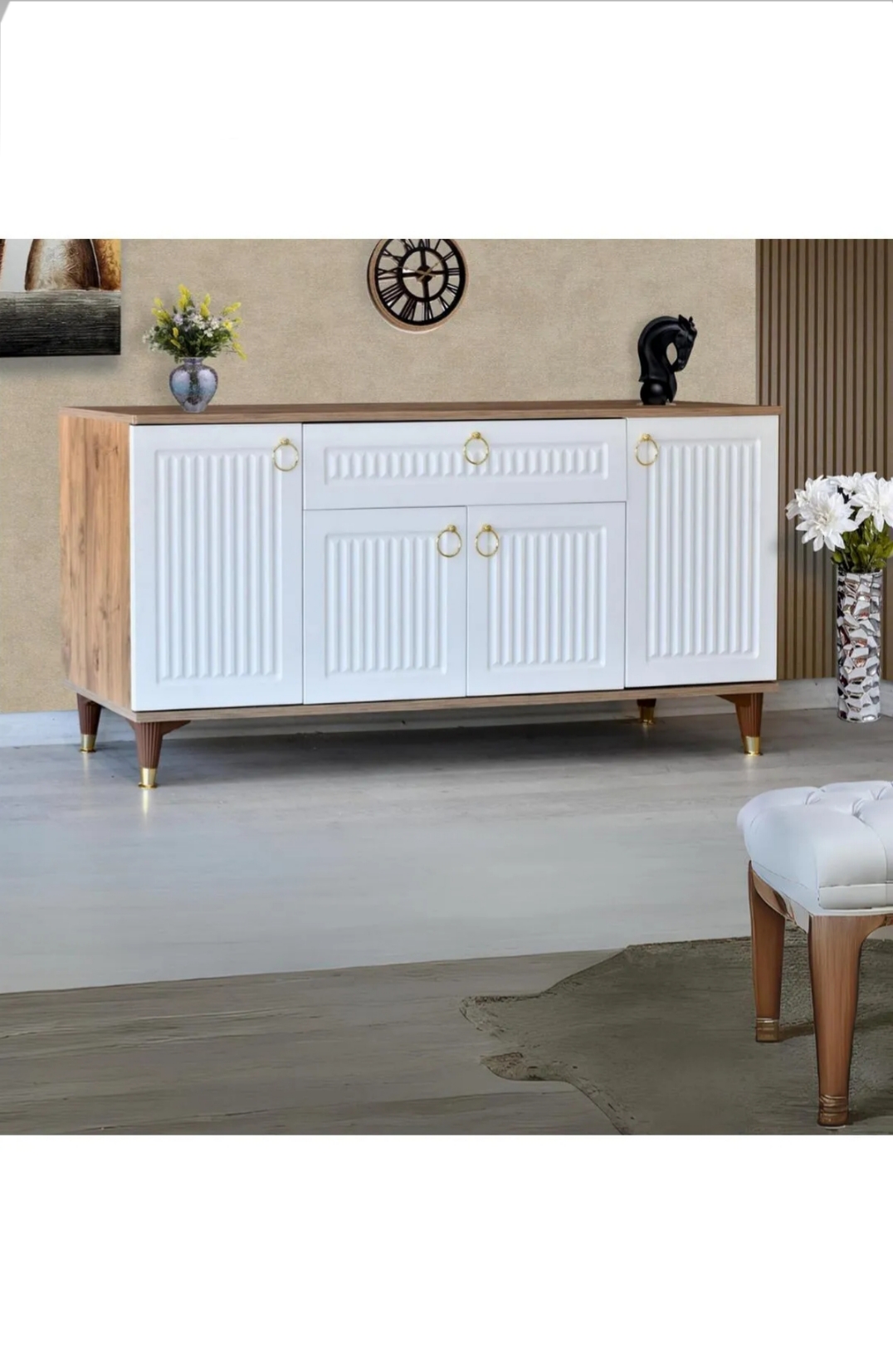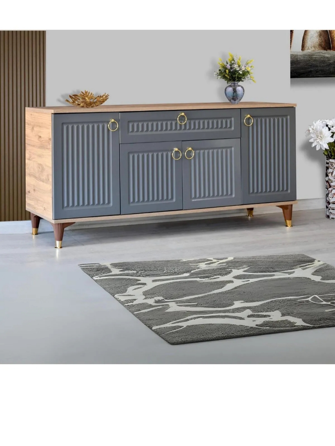 Geniş iç hacmi sayesinde eşyalarınızı düzenli bir şekilde saklayabilir, üst kısmını dekoratif objelerle tamamlayarak yaşam alanınıza zarif bir dokunuş katabilirsiniz.
