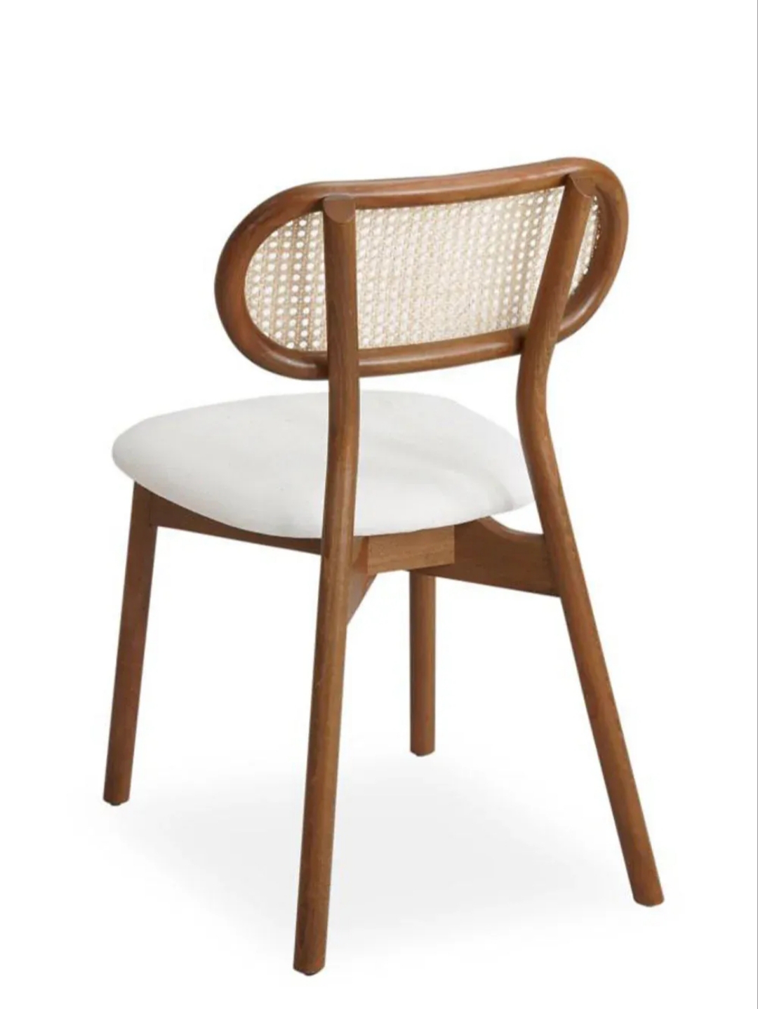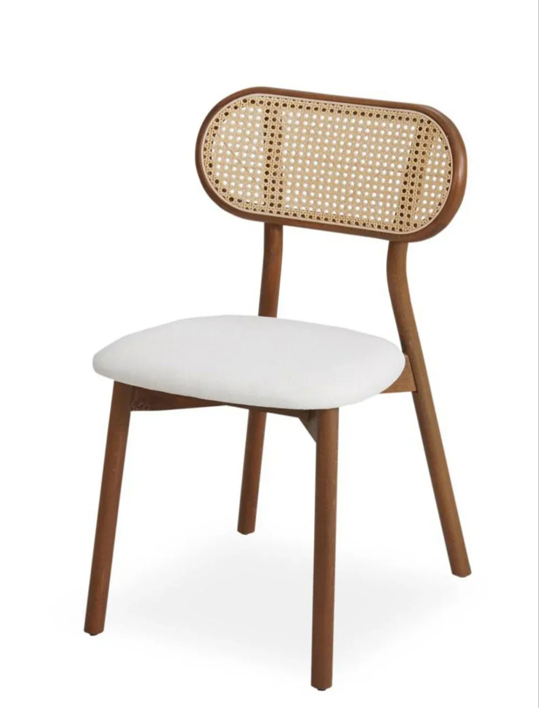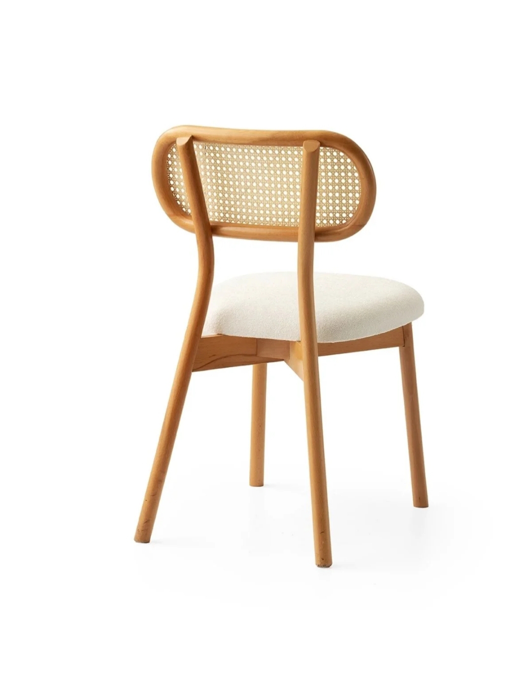 Sırt kısmındaki doğal hasır dokusu, hem nefes alan bir oturum sağlar hem de ortama estetik bir doğallık katar.