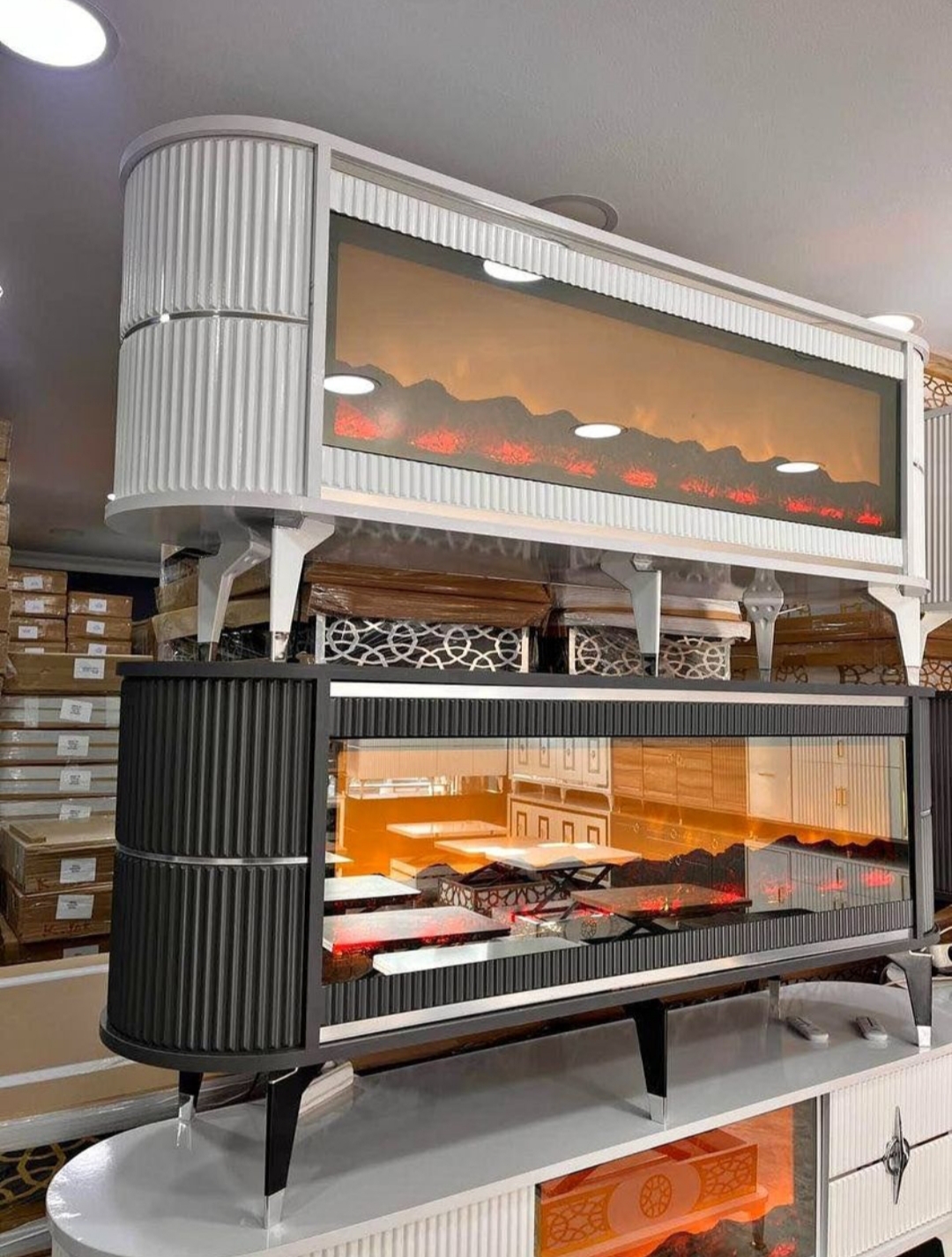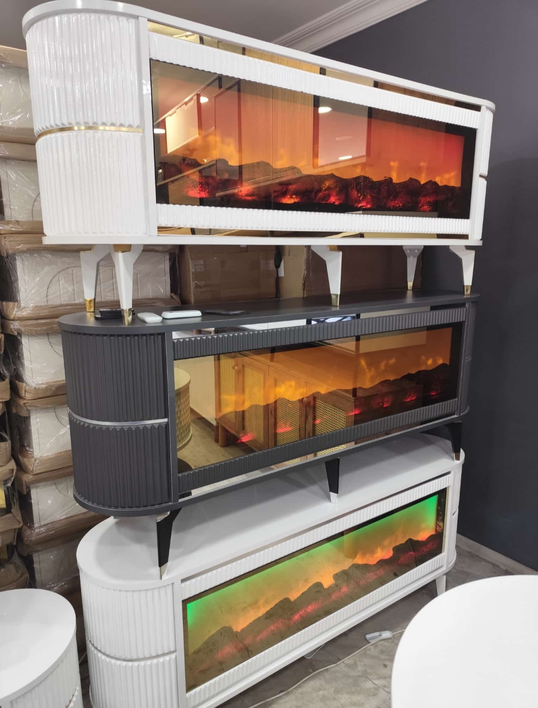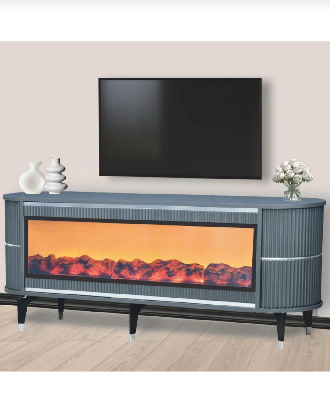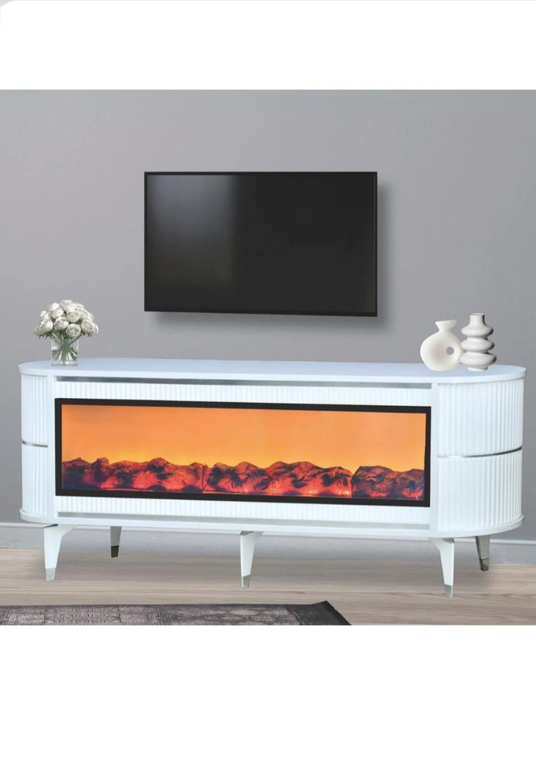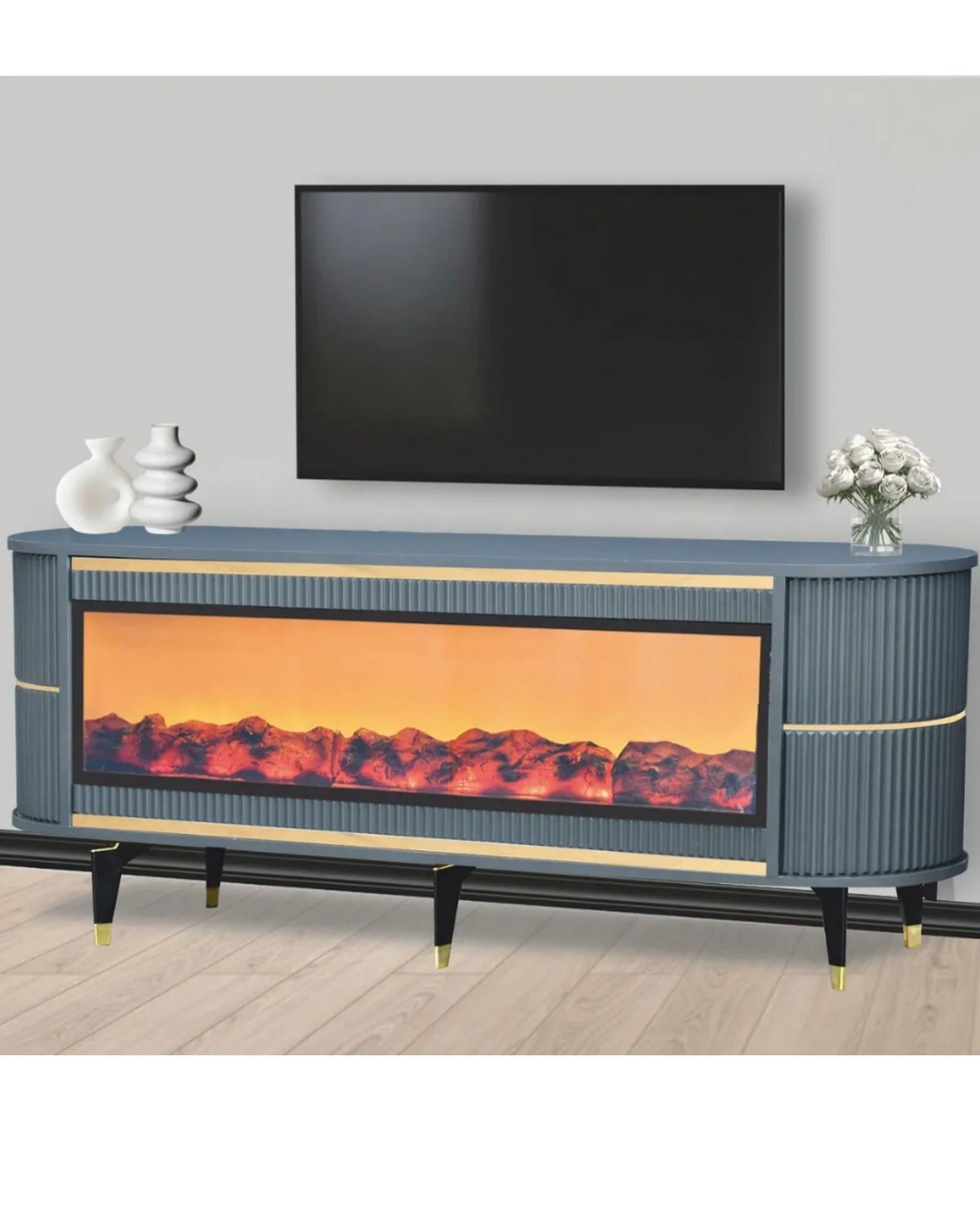 ölçüler 160x67x40 cm Evinizde hem görsel şıklığı hem de teknolojik konforu bir araya getiren özel tasarım! Renk Değiştiren Şömineli TV Ünitesi, modern çizgileri ve sıcak atmosferiyle yaşam alanlarınıza benzersiz bir hava katar. Dayanıklı suntalam malzemeden üretilmiştir. Gerçek ahşap dokulu yüzeyiyle estetik bir görünüm sunarken, LED şömine bölümü ortama loş ve huzurlu bir ışık yayar. Şömine alevleri farklı renk seçenekleriyle değiştirilebilir, dilediğiniz atmosferi kolayca oluşturabilirsiniz. Entegre Bluetooth bağlantısı ve dahili hoparlör sistemi sayesinde telefon, tablet veya televizyonunuzdan müzik dinleyebilir, keyifli bir ortam oluşturabilirsiniz. ✅ Renk değiştiren LED şömine efekti ✅ Dahili Bluetooth bağlantı ve hoparlör ✅ Suntalam yüzey – dayanıklı, kolay temizlenir ✅ Bohem-modern tarz – sade, şık ve sıcak görünüm ✅ Geniş raf ve depolama alanı ✅ Salon, oturma odası ve misafir alanları için ideal Tek bir ünitede müzik, ışık ve şıklık bir arada! Pahalı sistemlere gerek kalmadan, evinizde sıcak, modern ve keyifli bir atmosfer yaratın. 🔥🎶🌈