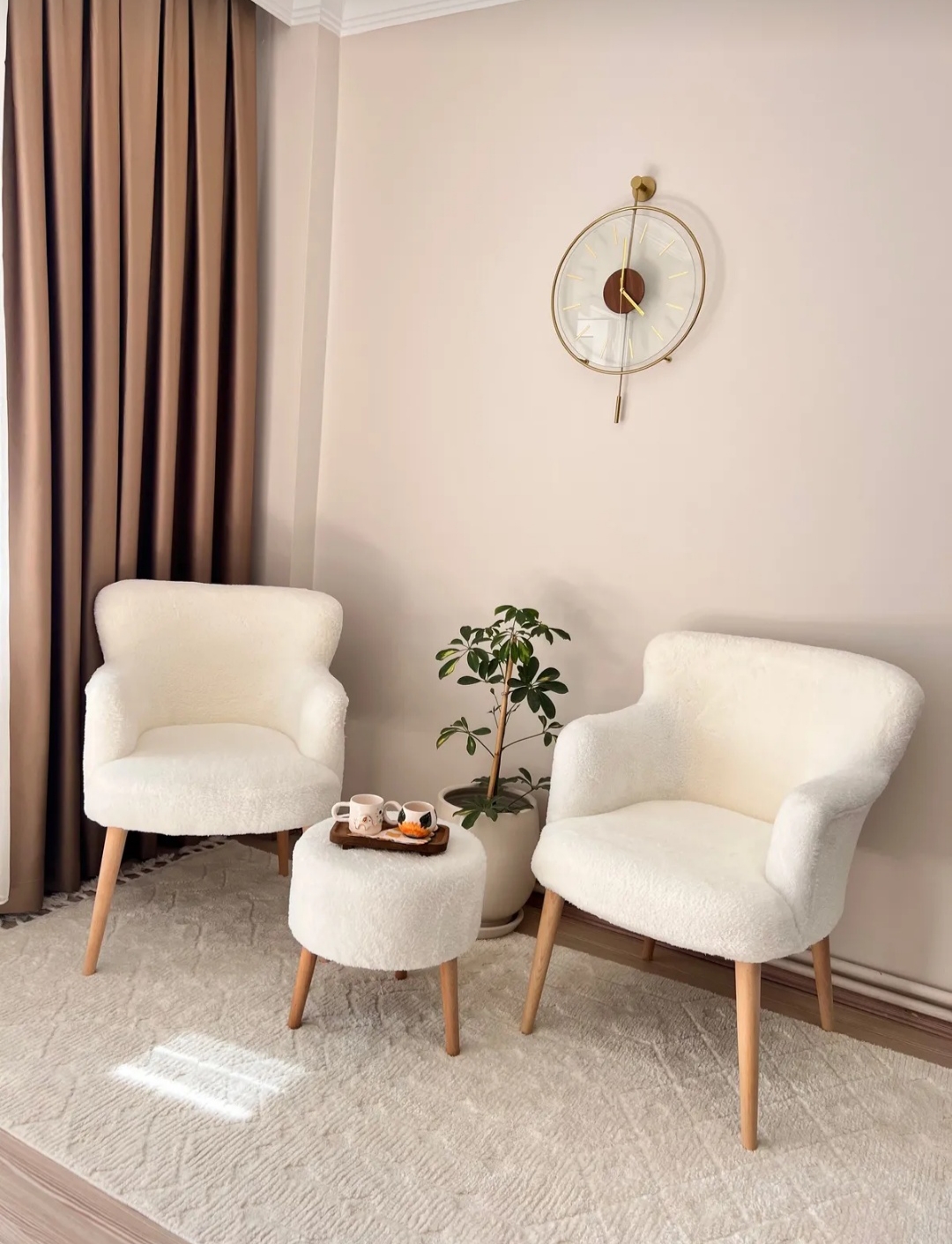 Hem konforlu hem de zarif bir görünüm arayanlar için ideal seçim! Puflu çay seti, doğal ahşap ayaklarıyla modern çizgiyi bohem bir sıcaklıkla buluşturur. Balkon, teras veya salonlarınızda çay keyfinizi daha özel hale getirir.